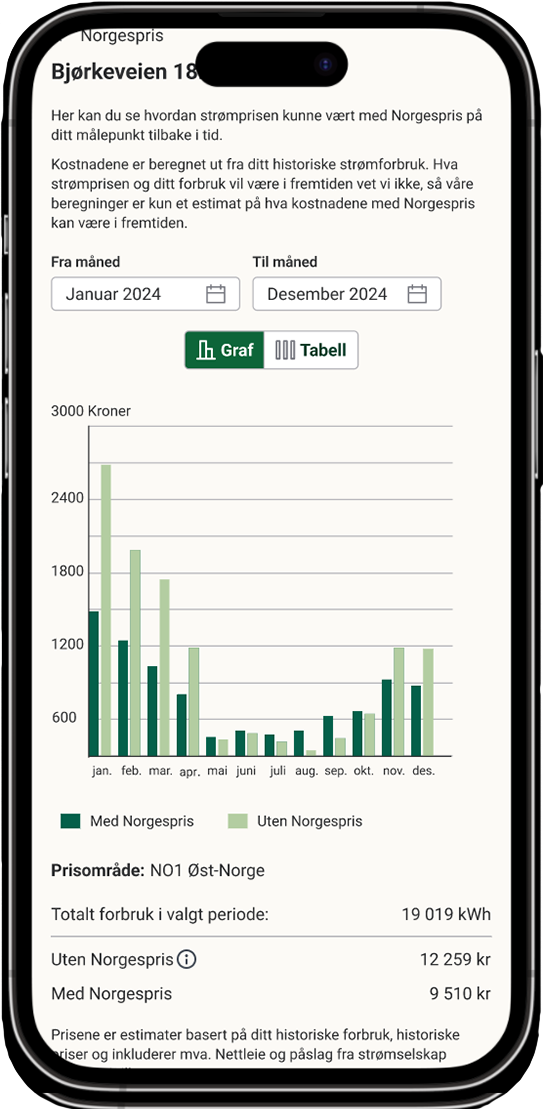 Nå kan du se hva du ville spart med Norgespris sammenlignet med dagens strømstøtte – direkte i portalen, basert på ditt eget forbruk.