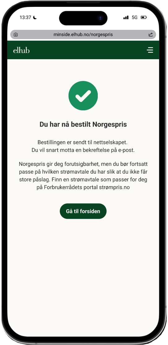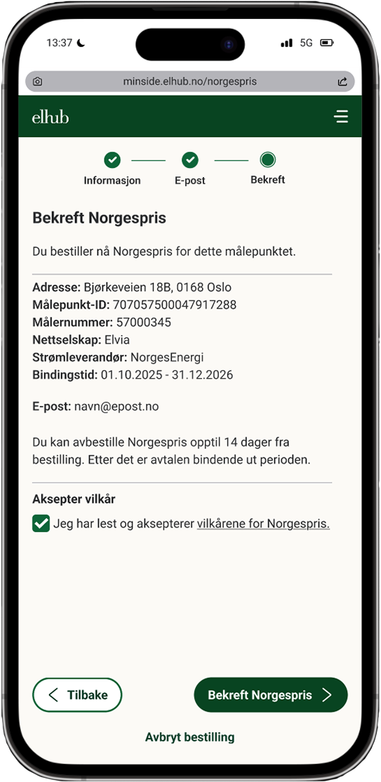 Du kan bestille Norgespris fra og med 24. september 2025, via portalen Elhub.no.